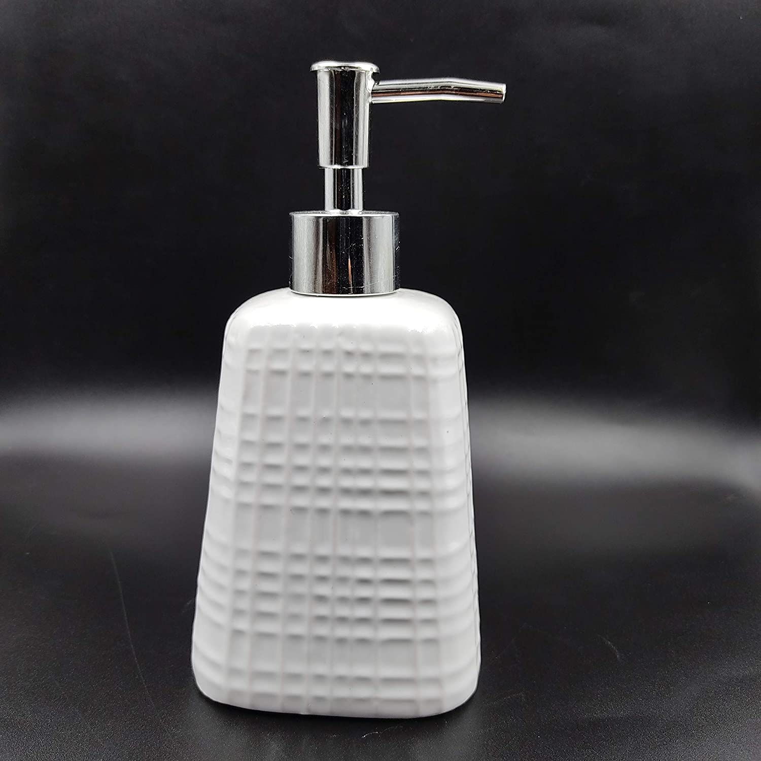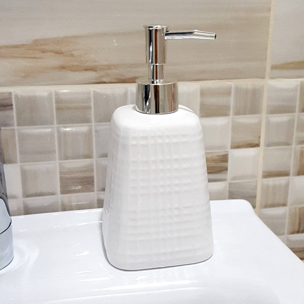 Ceramic Chex Design Liquid Soap, Shampoo, Conditioner, Shower Gel Dispenser (White, 400ML)
