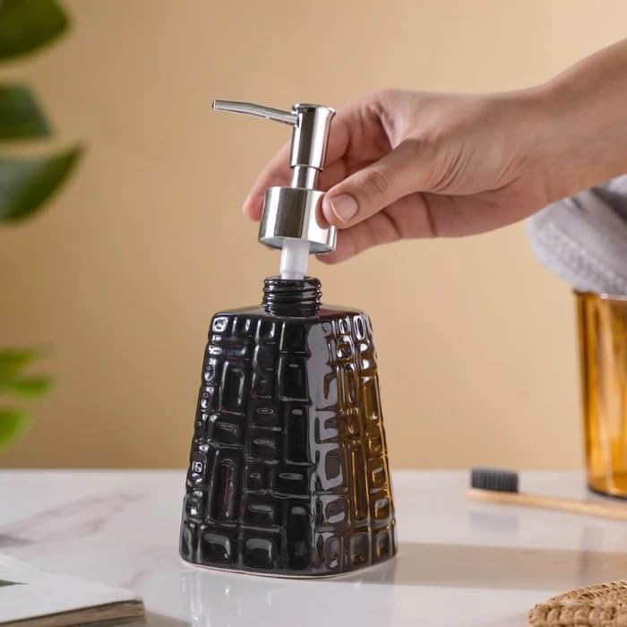 - The soap dispenser from Satsun is made from premium quality ceramic material. It is durable, rust-proof, leak proof and easy to wipe.