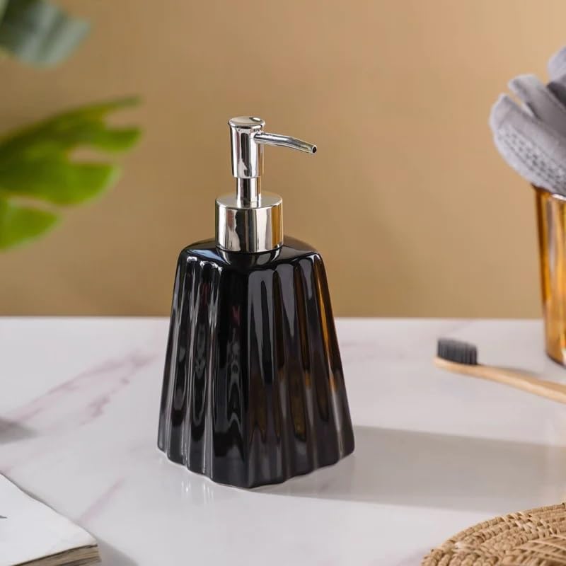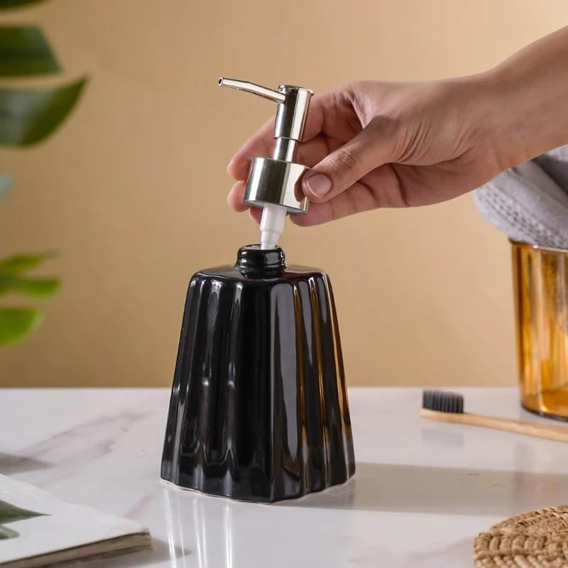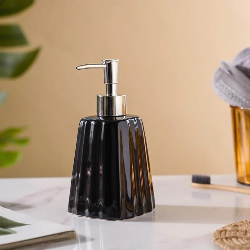 - Avoid wastage of liquid soap by appropriate dispensing. Ceramic hand sanitiser bottle / Dispenser for bathroom Basin. Add beauty to home. Bottle Liquid Soap Dispensers. Elegant and Beautiful Refillable Liquid Soap Dispenser