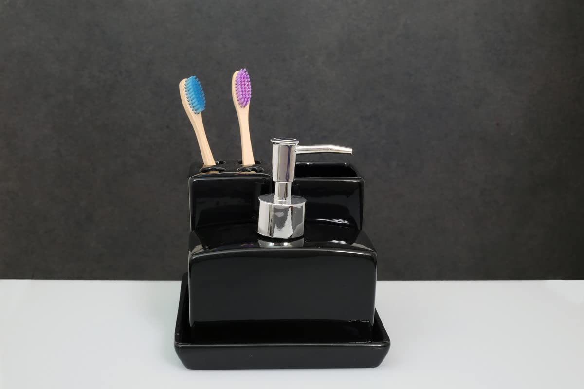 Square Design Bathroom Accessories Set Ceramic – Including 4 Piece Marble Bathroom Accessories Set Soap Dispenser, Toothbrush Holder, Tumbler, Soap Dish, The Best Gifting Choice